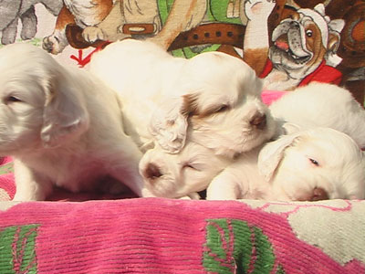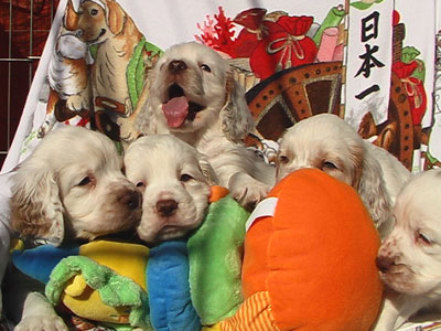 | わたしの可愛いTRY−BEST−INのベビーたち……… 随分大きくなったことでしょうね! あなた達に時々とっても会いたくなります。そんな時、私はベビーたちのページを開き、あなた達に話しかけます。 皆、にっこり笑って私に尻尾を振ってくれてます。 |